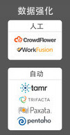 自动数据强化甚至能够有效地清洗数据,只要这个过程不需要人参与。从规定姓名和日期格式等简单任务,到从网络上有效抓取元数据等复杂任务,都是自动数据强化的典型例子。Trifacta、Tamr、Paxata和Pantaho 等都提供了很好的自动化解决方案。公司们都希望能够把一些宝贵的时间还给他们的数据科学家,因此自动数据强化也是正在快速发展。