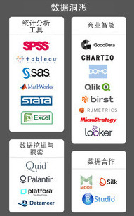 我把这些工具分成四类,分别是统计工具、商业智能、数据挖掘和数据合作。前两类里,很多成熟的大型工具已经被使用了数十年了。数据挖掘和数据合作虽然不是新鲜出炉,不过市场还不够成熟,我预计将会随着越来越多的机构重视数据而急剧增长。